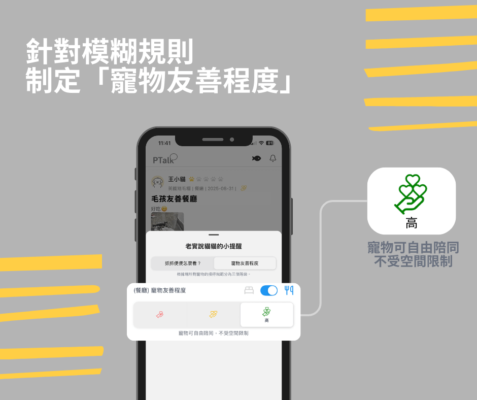 依據毛孩是否可落地、是否有限制等標準,幫助飼主提前評估,做好安排。